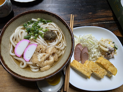 Read moreうどんは昔ながらのやわ麺で優しい出汁が良いです。おかずも煮物も卵焼きも、お家ご飯の様で雰囲気と言い最高でした。 又行きたくなりました。お婆さん一人で頑張っておられるので少し時間がかかりますがその事を深めて私に...