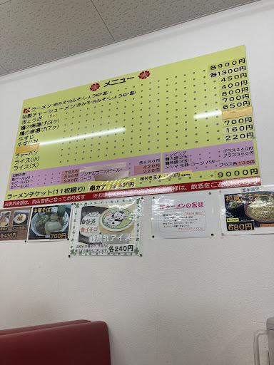 ディナーで19時頃にお邪魔しました。 待ち時間はありませんでした。 店内はカウンター席とテーブル席があり、座席スペースは広々としています。 店員さんの明るい対応が好印象でした。 桜ラーメンと濃厚豚骨醤油ラーメンをオーダーしました。 料理の提供時間は5分程度です。 桜ラーメン醤油味はモヤシとチャーシューでボリューム感があります。 味は安定の醤油味で美味しかったです。 濃厚豚骨醤油ラーメンは平日限定メニューのようです。 濃厚の品名ですが、意外とあっさりしたラーメンです。 駐車スペースは広々としていますので、大きめの車でも安心です。 若い店員さんが多いですが、声が小さくもっと元気が欲しかったです。