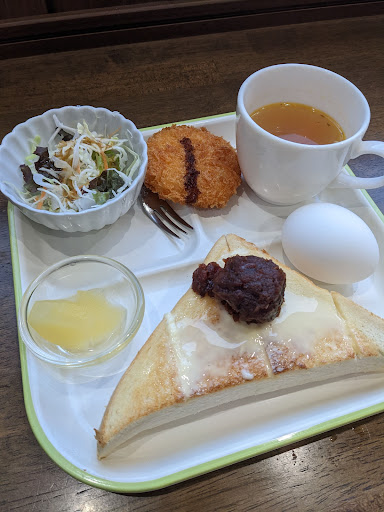 Read more喫茶店とコインランドリーが併設されてます。喫茶店が通りの裏手になるので場所はわかりにくいです。モーニングはサラダ、トースト、コロッケ、茶碗蒸し、フルーツ。トーストは複数から選べました。個人的にモーニングに茶碗蒸しが出るところは間違い無い...