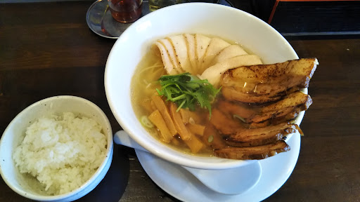 えっ!?旨ーい! 塩ラーメンだからなのか、よく分からないが…全くノーマークで、同僚からの勧めがあり来店。 平日開店5分前につくも、店を出るまで他に客は来なかったが… とても旨い塩ラーメンが食べられた!! 一口目のスープから美味く、フランス、沖縄産の塩を使用とメニューに書いてあり、その通りなんだなぁと納得の味。 麺は細硬麺。この塩スープに合った絶妙な茹で加減。 塩チャーシューを頼んだが、豚バラ、低温鶏チャーシューともにかなりふんだんに乗っており食べ応え満足感あり! ランチ時ライス無料でお腹も丁度いい感じに満たされた。 感心したのが、丼ぶり! 深ぞこ器の為、スープが冷めにくい。 他店でも取り入れて欲しいと思うが、この深ぞこはラーメンには適した器だと思う! 採用している店はほんの一部なので見習ってほしいも...