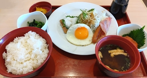 幕の内朝食 (ご飯大盛り) ※ 無料 (小盛 も 可能です) 明太子 (食卓のやまや明太子使用) (単品) ※ モーニングメニューは、全品 ドリンクバー 付 +100円(税込110円) で スープバー も 利用できます (スープ は 3種類)