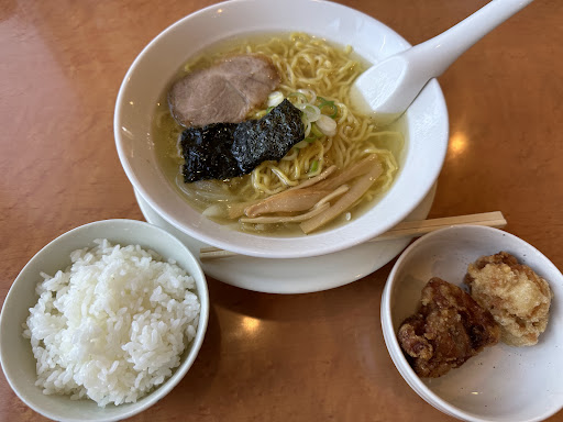 以前は味噌派でしたが今は塩派、素材の味が生きて私好みの硬めの麺でした。 でも、これは大正解かも😝 ラーメン自体は素朴な味でどこか懐かしい様な感じでした。唐揚げはサクサクで味も良し、白米が絶妙な炊き加減で甘味があってこれまた旨し! まあ... この際、体重計の数字は見なかった事にするとしましょう🤣