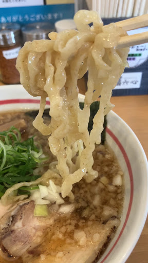 Read more中華そば六心さん。 日曜日の11時頃に初めて訪問。店舗前に6台ほど駐車可能です。先客は2組4名、早い時間だからまだ空いているのかな?初めての訪問で券売機前で悩みました。 背脂かつお中華そば¥1,000 チャーシュー(ムネ・モモ各2枚)¥400 小ライス¥150 合計¥1,550、かなり豪華なラーメンランチとなりました。 若目な男性スタッフ2名と親切そうな女性スタッフ1名でお店を切り盛りされています。カウンターからテキパキとオペレーションされている様子が伺え5分少々で着丼です。 太い平打縮れ麺と背脂が浮いたスープが普段食べているラーメンとは違います。結構な量の背脂がトッピングされていますがみじん切りされた玉ねぎと相まってそれほど脂っこさは感じられず鰹の出汁を感じる上品なスープです。縮れ麺によく絡みとても美味しい。トッピング注文した鶏モモと豚モモのチャーシューはとても柔らかく仕上げられていてライスのお供にピッタリ。太いメンマが2本、小ぶりな海苔もライスのお供に。脂っこいガツン系が好みの方には物足りないかもしれませんが、スープの出汁をしっかりと感じることができるとても完成度が高いラーメンでした。 次回はメニュー表トップバッターの鰹と鶏の中華そばを頂いてみようか...