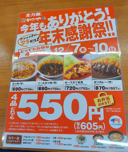 いつの間にかできていたので、これから昼で忙しくなるぜーっていう少し前にフラリと往訪。 【店】できたばかりというので当然綺麗。この辺りはこういった定食系が食べられる店を見かけないので、この辺りに勤めてる人やドライバーさんにはありがたいと思う。駐車場はさすがに4tは無理だけど2tレベルなら余裕で停められる広さ。ただ残念なのは、雪解けの水滴が入口の庇から垂れ流しということ。新しく作った店舗なのだから、設計する時に気づいて欲しかった。 【味】下手な定食屋やとんかつ専門店に行くくらいなら断然かつや。定食も捨てがたいが、やっぱり丼で汁が染み込んだご飯を食べるのが醍醐味。半熟玉子でとじられた揚げたてカツは、サクサク食感を残しつつアツアツ。余熱で段々火が通る玉子がたまらない。場合によっては火傷するので気をつけて食べたいところ。期間限定メニューを攻めるのもまた楽しい。 【他】てっきり冷凍モノが送られてきて、それ揚げるだけかと思ってたら、厨房から肉叩く音がするので、ゼロから作ってるっぽい。これは頭が下がる。あと意外とテイクアウト需要が多いってことと、人間なんだし話をするなとは言わないけれど、店員さんのおしゃべりのボリューム下げた方が心...