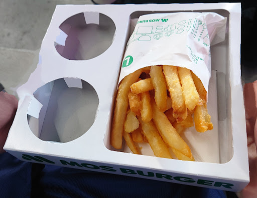 Read moreエスコンフィールドのモスバーガーに行って来ました。 開場してすぐに行くと意外に空いており2組ほど待っているだけで、すぐにオーダー出来ました。 さっそくテリヤキバーガーセットと和風チキンバーガーセットをオーダーしました。 結構熱々のバーガーですぐ受け取る事が出来ました。 セットはフライドポテトが付きます。 ドリンクはセットに含まれず別会計になります。 フライドポテトは結構ボリュームがあってバーガーとセットでいい具合にお...
