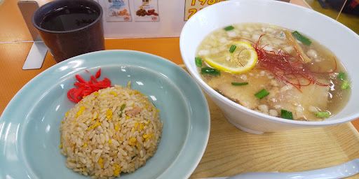 麺は太めの縮れ麵。 メンマは普通。チャーシューは適度な柔らかさで脂は抜けている感じ。 スープはくどく無く、玉ねぎと背脂がトッピングですが、レモンの切り身が入っているので少しサッパリ感があります。 麺が太くもちもちしててのど越しが良い感じです。 スープもくどく無いので最後まで飽きずに食べれました。 ミニ炒飯の量は丁度良く、パラっとしていてこちらも美味しかった。