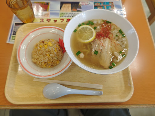 昼食時だった為食事目的で立ち寄りました。 駐車場はそこそこの広さがありますが、土曜日ということもありほぼ満車。 フードコートは広いとは言えませんが、座席数は50位はありそうでした。 メニューが多いので食券機前で考える人多数。 麺類から定食等様々ありましたが、私は中郷ラーメンセットを選択。