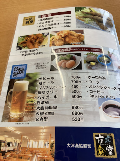 Read more直営市場食堂の名を見て、そこで新鮮で美味いものが食えると思って店に入りました。 最近刺身食べて無いな。 多分此処では美味しいものと期待して、刺身定食¥1500を注文しました。 処が、全くの期待外れでした。 全体的に量が少なく、色ボケした赤身。 新鮮さが全くなく美味く感じられませんでした。 一緒に行った連れもビックリでした。以前は違ったよなと。 スーパーで売っているものの方が美味いとさえ感じられました。 新鮮だと思ったのは、刺身の下にあった大根のツマと大葉です。 海無し県で食べたのが、もっと美味しい物が食べられますよ。茨城県 そして 大津漁協直営店が、情け無いです。 それと、オレンジやもずくや漬物など付いていましたが、漁協直営店の刺身定食であるならば、刺身そのもの ドカンともう少し量を増やして、余計なものは付けない。 新鮮さで勝負したらいいでしょう。 わさびは随分の量有りました。今日はやけにわさびがヅンと、鼻と目にしみましたよ。 今日の食事の¥1500は高すぎた。次はもう食べに行きませんね。あの味ではどう見ても、¥700がいい処でしょう。 だから全国知名度ランキング最下位な...