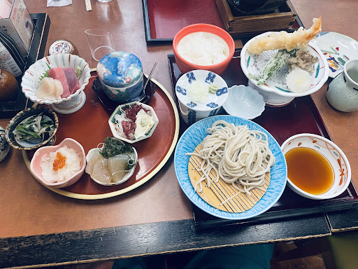 平日のランチタイムに行ったので混雑してるかと思い待ち時間を覚悟して行きました。。 席は空いてましたが、スタッフ不足で片付けが間に合わないのか10分程待ち席に着く事が出来ました。。 ランチメニューを注文しましたが、注文してからはさほど待つ事無く提供されました。。 丼物と蕎麦、うどんが選べ、今回はネギトロ丼と冷たい蕎麦にしました。。 野菜サラダに付くドレッシングは全種類テーブル席に置いてくれるので自分で見て選べるシステムはいいです。。 毎回思うのですが、唐揚げは塩っぱく、作る方は1度試食をして欲しいです。。 スタッフの対応はいいですね。。 2023.7 19時前に行きましたが、店内はそれほど混雑してなかったのにスタッフの案内に時間が掛かりました。。 注文してから提供...
