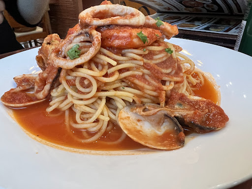 海鮮トマトソーススパゲッティはエビが3尾、ホタテ、あさり、イカが入っており具沢山でした。 麺の固さもちょうどよかったです。 トマトソースはシンプルな味付けですが、トマト自体の素材の味が出ており美味しかったと思います。 辛いのが好きなのでたっぷりタバスコをかけていただきましたw 都内にも店舗があるみたいなのでカニピラフにも挑戦してみたいと思います...