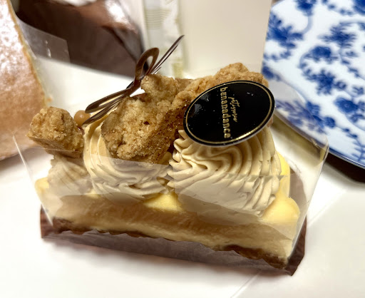 どのケーキも工夫を凝らした手間暇かかったつくりをしていて、期間限定商品も通常商品もすべて美味しいのですが、今回購入したケーキも絶品でした。 期間限定商品のキャラメルチーズタルトは一番下がタルト生地、その上にチーズケーキ、更にその上にキャラメルホイップクリームと恐らくクッキーと思われるサクサクのとても美味しい飾りがついています。 この四つの要素で成り立つケーキですが、上から下までフォークで掬って食べた時のバランスの良さ・美味しさは言わずもがな、ひとつひとつの要素単体の美味しさも格別です。