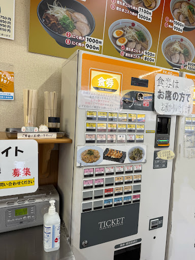 Read more駐車場はお店の正面に3-4台、お店の裏に5台?(うろ覚えでごめんなさい)くらいあります。スペースはかなりタイトなので大きめの車で来店する場合は、少々厳しいかもしれません。 平日のお昼過ぎに伺いました。家族連れ(座敷席)、サラリーマン風の方など8割ほどお客様がいらっしゃいました。何度か訪れたことがあるこちらのお店ですが、小さいお子さん連れのご家族もよく見かけます。座敷席があるのが有難いですね。 注文は券売機でします。時間帯にもよると思いますが、注文~提供までの流れはかなりスムーズです。10分も待っていないと思います。