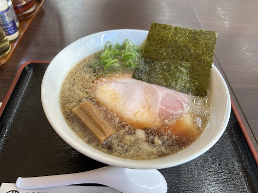 Read more開店時間の10時にお邪魔させて頂きました。 入口すぐに食券機があり購入して店内に入るタイプです。食券機の周りに紙で他メニューも貼りだされています、Webで確認できるメニュー以外にも油そばや魚粉を使ったラーメンなど様々。 自分はシンプルにらぁ麺(背脂トッピング↩︎無料)にしました。 店内にはいると店員の方がすぐ食券受け取り➕席案内をしてくれる為、安心です。晴れの日で日が出ていた為、カウンター眩しいので奥のテーブルにどうぞ(混んでいなかった為)と配慮して頂き助かりました。 店内は4人テーブル席4つとカウンター6席(位)で席間隔が少し広めの印象でゆったり過ごせます。