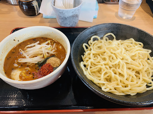 2023/10/11 16:15頃来てみた。平日で混むような時間帯でもないのか客は自分1人だけ。 辛つけ麺(中盛)にトッピングで玉ねぎ+白髪ネギ+もやし。テーブルを見ると割スープが無かったけどつけ麺が来るのと同時に割スープも来たのでわざわざ頼む必要もなさそうだった。味は辛味は少し強めかな。個人的にはちょうどいいけど辛いのが少し苦手な人はもし頼むことがあったら注意。さらに辛そうな極とか券売機にあったけどあまり辛いのも…と思って頼まなかった。