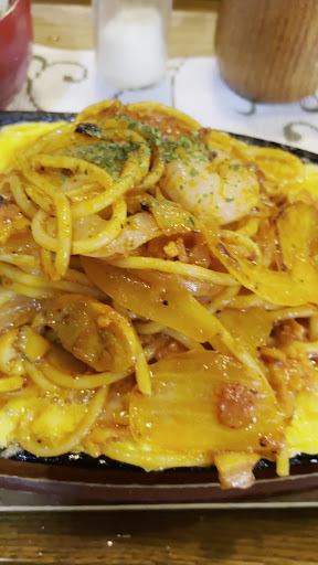 Read moreナポリタンとジャンボ海老フライが名物と聴いてランチで訪問。現地に着くまでは住宅街にある穴場的な存在なのかなと思っていたが、一般的には昼営業ピーク過ぎにも係わらず、10台位は停められる駐車場に空きはなく席も満席で、県外ナンバーやレンタカーも散見され、暫く待つことになりました。メニューは思いのほか多彩で迷うのは必定ですが、ジャンボ海老フライ付はオムライスくらいしか見当たらず、しょうがないのでナポリタンと唐揚げのランチセットにジャンボ海老フライを追加トッピング。ジャンボ海老フライと唐揚げは揚げすぎだったもののナポリタンはパスタの餅餅感が秀逸で(学校給食の甘く赤いソースとは全く異なる)ボロネーゼに近いナポリタンソースも癖になる旨さがあった。尚、オムライスとローストビーフ丼とハンバーグをシェアし食べた限りでは、次はナポリタンを多分オーダーしないと思う。尚、同店の開店当初は珈琲喫茶だったらしく、カウンターやメーター級の高額そうなスピーカー、喫茶的セットメニューと皿・器...