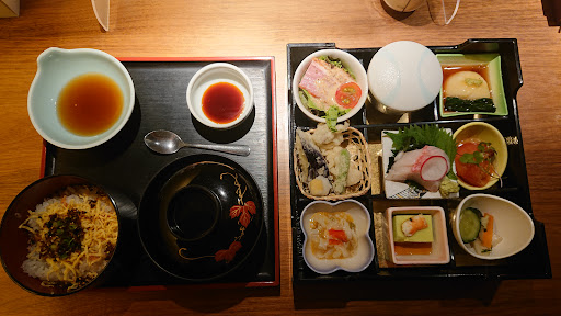 Read more誕生日祝いで行きました。(妻の計らいで) 先ず、出てきたビールの泡がきめ細かいこと。美味しかった。(グラスのキリンマークもしっかりこちらに向けて置いていかれました。偶然じゃないね、みんなそうだった。) 料理のお膳は見た目の器が華やか、配置が立体的、色合いも素敵なものでした。 天ぷらの衣はさくさく、トマトがフルーツみたいに盛られ、甘い味付けの梅干し(?)ももう1つつまみたかった。「熱いですから…」と言われた茶碗蒸しも熱々が最高でした。 今度行くときは更に上のクラスを頼んでみようかな。 あ、あと、行くなら夜がいいと思う。ライトアップされた外の木が最高。少し雪があった方が...