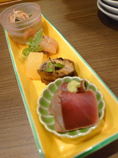 Read more画像を見てもらえば伝わるかと思いますが、いつまでも眺めていたくなるほど綺麗で凝った盛り付け。眺めながら味を想像するだけで十分楽しめます。そして期待を超える味。美味しいだけでなく、あの食材とこの食材??!!こんな組み合わせあるんだ!斬新!という驚きがアクセントとなって酒が進む進む。大将の創造性溢れる料理の数々に、誰もが満足することでしょう。