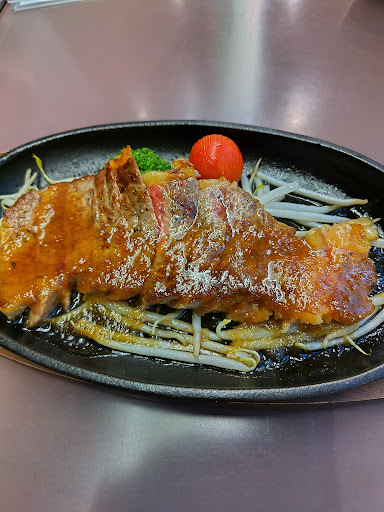 サラダが出てから、メインの肉が出るまで待たせすぎです。店に他の客がほとんどいなかったのに、なんでこんなに待たすのかと思っていたら、ステーキ用の鉄板皿の上にわざわざ黒いたくさんの石をのせて出てきました。多分この石をオーブンか何かで熱してたんだなぁと思いつつ、肉はとても脂ののった値段不相応によい物を使っていると感じました。 ただ待たされすぎて胃が萎えていたせいか、脂がしつこくて重かったです。あと、たくさんある石、全く熱が入ってない。乗ってたステーキが触れた部分は赤いままでした。これ、場所をとってるだけのかさ増しオブジェクトに見えるのでまったくの無駄です。 こんな手のかかることをするなら、ステーキ宮のようにペレット(焼け石)を温めて必要に応じて提供するとかの方がいいです。そんな無駄なことしなくても、ポテトかタマネギでも追加してステーキ皿だけで十分ではないでしょうか。その分もっと早く肉をサラダの提供に合わせて提供した方がいいですね。