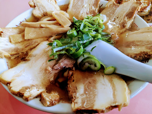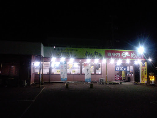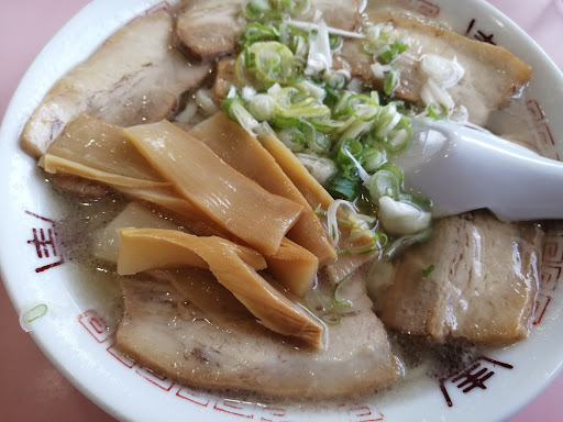 Read more喜多方ラーメンを食べに来ましたが目的のお店が調べていた時間より早く閉店してしまっていて通りすがり営業をしていたお店わんわんに入店しました。 午後3時前に入店しました。 1人お客さんが食べていたほかは空いていました。 ラーメン屋と骨董(中古品)を売っているお店のようです。 私は会津山塩チャーシューメンとシェアで餃子5個を妻は辛みそラーメン2倍を注文。 会津山塩チャーシューメンは丼ぶりが小ぶりで麺は多めに入っているようで、丼ぶりに麺がぎちぎちに入っていて、、ちょっとスープとのバランスが悪かったです。 麺は中太平打ちぢれ麺で喜多方ラーメンの麺でした。 チャーシューはバラ肉で脂身のところがトロトロになっていて美味かったです。 餃子は大きめの手作り餃子でした。 妻は辛みそラーメン2倍は食べ進めているうちに...