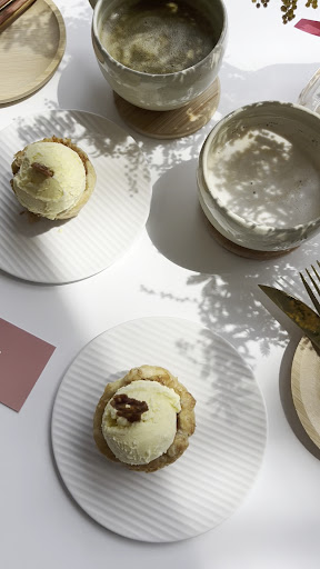 ⬛︎注文した料理と感想 ・スイーツ バナナチーズケーキは、栄養満点のバナナとクリーミーなチーズケーキの組み合わせ。グルテンフリーで、しっとりとした食感が特徴。バスクチーズケーキも注文したが、しっかりとした濃厚な味わいで満足感があった。 特にお気に入りはアップルパイ。じっくりと煮込んだりんごのコンポートがサクサクのパイ生地で包まれ、上にトッピングされた丸いバニラビーンズが印象的。バニラアイスを少しずつ溶かしながら、下のアップルパイと一緒に食べると、甘さと酸味のバランスが絶妙。非常に美味しかった。