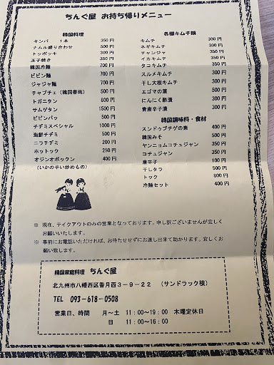 Read more気になってたので訪問。 コロナ影響下のため、持ち帰りのみで営業されてます。おばちゃんが一人でされていました。 頼んだものは、 キンパ ビビン麺 ニラチヂミ チャンジャ を注文しました。 早く食べたすぎてチャンジャ以外の写真を撮り忘れてしまった(_) どれも本格的で美味しいし、値段もお手頃だと思います! ニラチヂミは200円と安いですが、タレもついてくるし、何より美味しい。 チャンジャは市販のやつみたいにただ辛いだけでなく、旨味がある感じでした。 キンパはあっさり食べやすく、ビビン麺はピリ辛な感じで食べやすかったです。 確認はしてないのですが、お店の中にケジャンは要予約とかいてあったので、好きな方は問い合わせてみては? あと韓国の袋ラーメンとかも売ってました...