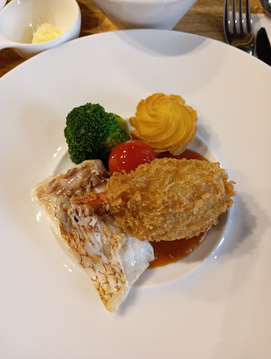 Read moreランチメニューの中から、オマール海老のクリームコロッケと鯛のポワレ〜アメリケーヌソース クリームコロッケと鯛のポワレは、アメリケーヌソースとよく合い美味しかった〜 ランチメニューには、スープ、サラダ、パンorライスが付いています。 子供の遊び場があり、子供連れのママ達が、たくさん来ていました〜 広い空間なので、子供たちのことは、全く気になりませんでした。 ゆっくり出来て、たくさんのランチメニューがあるので、又、行きたいなと思いました。 食後のザ・リッチショコララテは、クッキーのざくざく食感と、エスプレッソのほ...