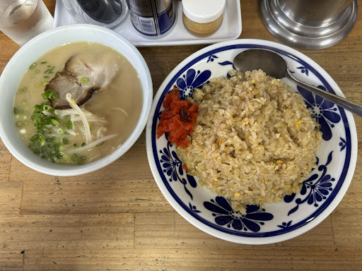 Read moreコレは美味いッ! 今回はチャーハンセット。 かなり昔、3号線のそばにあった店かなと思う。 多分20年以上前、亡くなった友達と食べたかな。たしか、チャーハンが異常に美味いがラーメンがあっさりしてたような。? んで、今回改めて食べましたが、チャーハンが非常に美味い。兎に角美味い。 見た目じっとり味濃ゆそうですが、噛み締め舌に転がすとパラパラ気味なのだ?また味は玉ねぎ系の甘みが効いで変に濃い味つけはないが絶妙に美味がきいている。塩見はあまり感じない。かわりにミニラーメンは塩が強めなため、最高にバランスが良い!また昔はドギツイラーメンが好みだったが今なら、コレもまた良きかなと思う。麺は中細麺、もやしにチャーシューと、ミニながらにラーメンのていはなしている。 少ないとの書き込みがあるが、この価格でミニなら十分である。 この店ならこのメニュー一択じゃあるまいか? またこのチャーハンは食べに来たい! おすすめの品である。 ...
