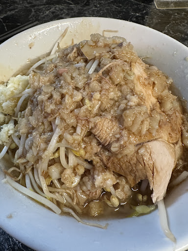 Read more二郎系ラーメンです。チャーシューがデカすぎて、ブロック肉を食べているようだった。味も塩分濃度が高くて、チャーシューを食べ終わるころにはくどさがあった。 麺は太いと思った。うどんよりも太くて「きしめん」より太くて腰がかなり強い。スープの味は醤油系で濃く、塩分濃度も高いが...
