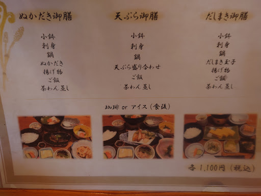 グーグル先生からおすすめが来たのでランチに行って来ました。 駐車場は店の斜向いに3台程停められます。 ランチタイムはご主人さんと女将さんのお二人で切盛りされているようです。 途中からお子様連れの若奥様二人のご来店。 店の中は5人程座れるカウンターと小上り、奥に座敷があり14、5人程の宴会も出来るようです。 さて、料理ですがお昼は日替りの1,000円のランチのみのようです。 この金額でがんばっているとお見受けしました。 一通りの物は付いていてどれも美味しかったですね。 ご飯は好みもあるでしょうが少し柔らかめで私には丁度良い炊きあがりです。 お米も真っ白で粒も小さくて美味しかった。 名物ぬかみそだきは少し辛めでお酒がいける味付けです。 う〜んこれも美味しい。 デザートはコーヒーとアイスクリームを選べて私はアイスクリームをお願いしました。 これもなかなかのお味。 団地の外れにこの様なお店があるとは。 ちょ...