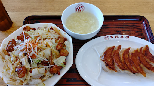Read more金曜の夕方6時ちょい前に訪問。 店舗前の道は中央分離帯があり、反対側からは入りにくく出にくい。 駐車場は広すぎるくらい広い。 店内は明るく清潔感がありいい。 来店時は誰もいなかったが、直ぐに4組の客が来店していた。(もしかしたら6時からのオープンか?) この日頼んだのは「麻婆丼セット」麻婆丼とは麻婆豆腐をごはんにかけたもの。それに餃子が6つと玉子スープがついている。 麻婆丼は、花椒が香っていていい。辛さがちょっと足らなかったので、辣油を結構入れた。うん。うまい。 玉子スープは優しい味付けで、麻婆丼を辛くしたのでちょうどいい塩梅に。餃子は普通に旨かった。 毎週金曜日は餃子(6個270円)が50円引きの220円になるらしく、他のお客は餃子をほぼ全員頼んでいた。 一人客用の席は、コンセントがある仕様で、きっと大阪のビジネスマンに...