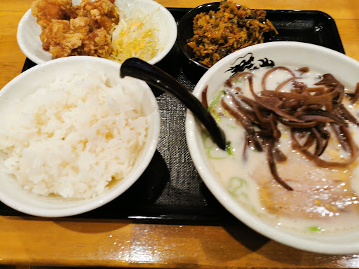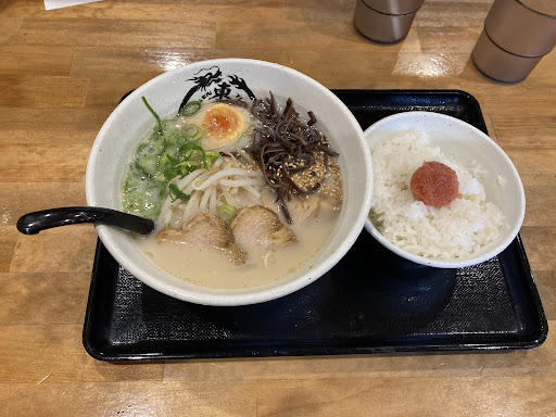スープはとんこつベースのスープですがアッサリとしておりなかなか美味しいスープでした。 他のクチコミにも書いてますがアッサリと薄いは別モノです。 麺は堅さの指定はできないようですがデフォルトでは堅くもなく柔らかくもなく無難な感じの細麺のストレートです。 個人的には細麺なのでもう少し堅い方が好みかな… 具材のキクラゲはシャキシャキ、味玉もしっかりと味付けされています。 チャーシューは三枚載っていましたが二枚でいいのでもう少し厚く切って欲しいところです。 ラーメンと一緒にいただいた明太子ごはんは明太子もさることながら白ごはんも非常に美味しかったです。 明太子が若干小さいですが高菜などがフリーでいただけるので物足りなさはありません。