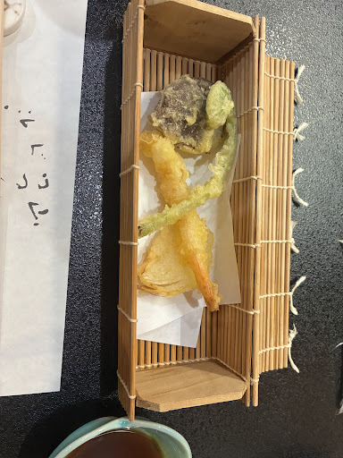 天ぷら、巻き寿司を作る巻きすのようなものに包まれて、中で見えないのでワクワク感がありました めんつゆでいただきました。季節柄ぜんまいが入ってたのが珍しくてよかったです。他はエビ玉ねぎしいたけでした