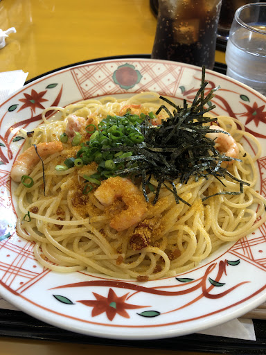 Read more以前行った時に時間帯がお昼頃で満員で 待ち時間がかかりそうなので別のお店に 行きました。今日は午後1時半でしたの で、スムーズに入れました。まず、メニ ューを見て種類の多さにびっくりしまし た。和風、洋風スパゲッティーに種類別 のハーフ&ハーフさらにスパゲッティー のハーフとピザのセットと30種類ぐら い有り、どれも美味しそうで頼むのに 目移りしました。妻と娘はスパゲッティ ーのハーフ&ハーフを頼み私はカルボナ ーラや湯葉や海老などが入りトマトベ ースで1・5倍を頼みましたが、ボリュ ームが有り美味しかったです。ランチタ イムは大盛は100円増しですが、夜は 180円増しなので割安です。さらに、 ソフトドリンクはわずか50円でデザー トも安かったです。又、別のメニューを 食べてみたいと思います。小学生の双子 の孫も連れて行こうと思います。 店員の応対も感じが良かったです。 皆...