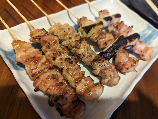 Read more串焼き、ぼんじり鉄板焼、焼き飯、焼きそばをオーダー。 串焼きはきもや、かしわ等色々オーダーしましたが、のど軟骨と親鳥の感想を。のど軟骨の肉はもちもちと弾力があり、そこに少し柔らかめの軟骨。あまりない食感です。親鳥はかたいかな?あまりオーダーした事がなかったのですが、こちらのは程よく、しっかりとしたうまみを感じました。再訪した際もオーダーしたいです! ぼんじりにも串焼きにも柚子胡椒が添えられています。焼きそばは、ラーメンの麺の様なストレート細麺でソースがからんだしっかり味。 美味しいお酒とつまみに加え、大将と美人女将の人柄でとても楽...