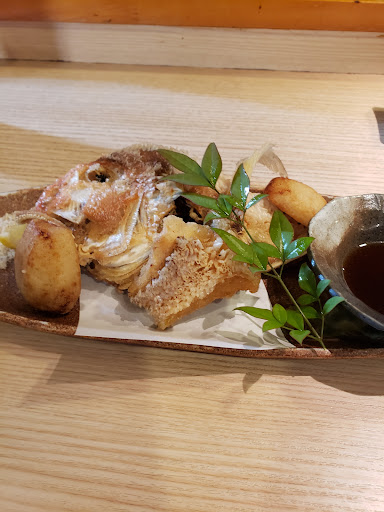 家族の食事会で来店しました。 和食のお店で経験を積んだと店主さんはおっしゃってました。 まずは、お通しの鰹のたたきの美味しさにびっくり。 期待が膨らみました。 お刺身は鯛と平目の姿作りにボタン海老やいか、ぶり、エンガワ、鯛など色とりどりのお魚が脇を占める楽しめる鉢盛で新鮮でおいしかったです。 続いて提供されたのは、ふっくらと焼き上げられた子持ち鮎。 絶品でした。骨まで柔らかく完食(頭としっぽしか残らなかった)(笑) 鴨の治部煮は優しいお醤油の味付けで鴨も柔らかく満足しました。天ぷらや茶碗蒸しも提供され〆のご飯は珍しいむかごご飯でした。この時点でお腹はパンパンに膨れもう食べれないと思ってしまいました。 なのにデザートはしっかり食べました。(笑) こんな料理に合う美味しいお酒をと注文するとお酒にうるさい連れ達は『美味しい❗』と喜んでいました。 看板に偽りのないお店なのだと。お酒を楽しみたい人にはきっと満足するお店だと思います。 予約をする時、量は少なくても美味しい物をリクエストしてこの質量は大変満足するもので...