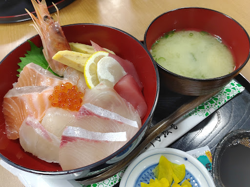 Read more食券を購入して注文するスタイルです。 海鮮丼などは食券機向かって左側で、出来上がると渡された機械が鳴ります。 定食類は食券機向かって右側で 出来あがると番号で呼ばれます。 特選海鮮丼(1200円)をいただきました。 盛り方はどうかと思いますが 刺身の鮮度もよく、味噌汁も美味しくいただきました。 据え置きの 醤油が、無いので醤油好きには少し足りないかもしれません。 ご飯の量はそんなに多くありません。 隣のアイスクリームやカキ氷を売っているお店と場所が共有なので、空いている席を見つけるの...