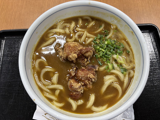 唐揚げ入りのカレーうどんも美味しい😋 ---下記は前回--- 今期一番の寒気に加え、強風で身体の芯まで冷え冷えです。。。 雪の舞い散る中、温かい物を求めお邪魔しました。 お店は食券方式です。 寒くなければ、海鮮丼一択なんですが、本日は汁物付きの限定アジフライ定食(税込¥850.-)をいただきました。 (食券を手渡す際にいただいたナンバープレート。 そのナンバーを呼ばれたら、厨房前カウンターに取りに行き、プレートと引き換えに定食等をいただく、フードコート方式です。)