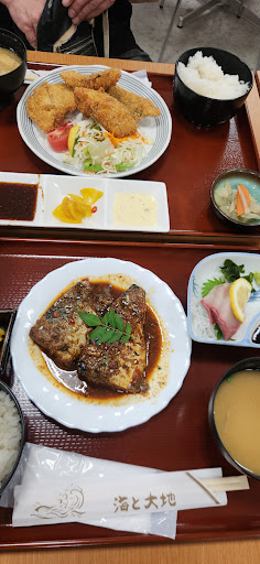 Read more日曜日のランチに利用しました。オープン間際に行きましたが、海鮮丼(780円)が人気で皆さん注文してましたね。私も極上海鮮丼(1000円)を食べました。券売機で食券を購入して、海鮮丼専用のカウンターに持っていく流れになります。着丼は早め。 海鮮は全て新鮮で言う事ありません。1000円は少々安いと感じるくらいの満足感があります。産直市場の海と大地の中にあるイートインなので、駐車場もたくさんあります。 唐揚げ定食(780円)は汁物が豚汁という点がプラス要素。小鉢のひじきも甘口で美味しかった。唐揚げ自体は普通だったので価格を勘案してト...