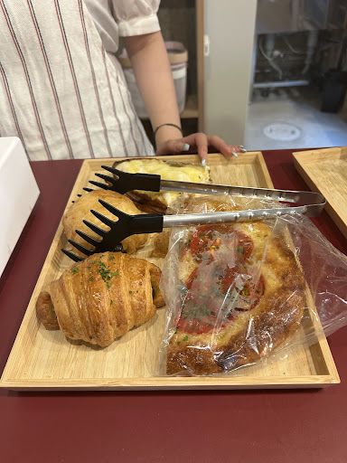 初めて行く客ですが、「拭いて使いましょうか?」 と言いたくなるくらい放置される。 2人の店員は、会計とパンを包むのに必死。 喉まで出かけた「手伝いましょうか?」をひっこめたときに やっと、お盆とトングを渡される。