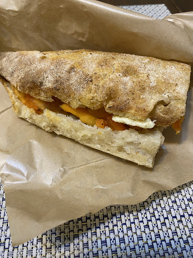 Instagramをチェックして、 天然酵母チャバタサンドの柿と莉焼きのいちじくジャムとバターのサンドをGET✦