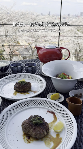 北九州 桜満開絶景隠れ家ランチ 3月22日で11周年桜の時期に行きたかったお店🤍 テラス席の景色店内も素敵なお店だよね🤍 お友達と3人でお花見ランチ🤍 3人で絶景に大興奮1日ほんと楽しかったね🤍