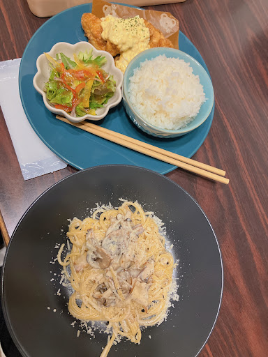 Read more子連れなので座敷が良くて予約して行きました。 予約の対応はとても良く、席も広くて子連れにはとてもいいところです。 14時半頃に伺いましたが平日ということもあり空いていました。 駐車場は契約のところが3台しかなく、中に居たお客様は2組でしたが埋まっていたのでコインパーキングに停めました。 四種のきのこクリームパスタとチャイティーラテのホット、主人がチキン南蛮とドリップコーヒーのホットを注文しました。 お料理は熱々でとても美味しかったのですが、食後のドリンクがどちらもぬるく、コーヒーを飲み終わったくらいのタイミングで可愛らしいラテアートがされたチャイティーラテがきました。 美味しかったのですが、せっかく食後に飲み物お持ちしますので呼んで下さいとおっしゃってるのなら それからドリンクを作って熱いものを提供して欲しかったです。 また、ラテアートに時間がかかり、他のものとの提供時間がズレるのであれば、その旨を伝えて欲しかったです。 味、雰囲気はとても良かったので⭐...
