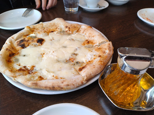 旨〜い! 抜群の焼き加減と塩梅です。チーズのなんと美味しいこと。 あっと言う間になくなります。 そしてクワトロフォルマッジ。 こんがり生地にタプタプのチーズたち。最初はそのまま。そしてハニーを垂らして進めます。美味しいです✨