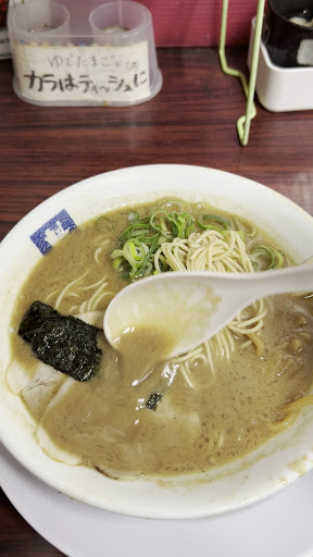 2023.12.28 夕方来店 以前行ってから2〜3年は経ったので再度リベンジに来てみました。 前回来た時は普通に注文したところ豚骨臭があるにはあるんですがスープ中の骨の粉感がかなり気持ち悪かったので、今回は注文時に可能な範囲で良いので骨の粉を少なめに出来ないかとお願いしたところ、若干程度ではありますが前回よりはざらつきの少ないスープで提供して貰えました。
