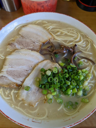 子供の頃の記憶が全くない。親戚が近くに居たので一時期この辺りに住んでた。店員さんに聞くと「17・8年」に成るとの事。そうだろうなぁガキの頃の記憶ないもん!と思いながら店内を見渡す。「あれっ、見覚えがある!来た事有るぞ!」と、思い出した・・。大人になってからだ!店の前に車停めてシコタマ怒られたっけ。かー。さて、思い出したらこっちのもの。私、闘将肉麺男は「確か・・」と記憶を探り、チャーシュー麺、ごはん、麦酒をチョイス。以前は車だったので「麦酒」は初。しかし「がーん!」Sドライか・・。まあ、仕方ない、無いよりはいいか。確か高菜が・・あった!麦酒のツマミにごはんに良く合う。チャーシューが肉と脂身のバランスが良く味付けもいい感じで、スープにもごはんにも良く合う。北九ラーメンとはまた違う進化を遂げている感じ。「珍」系よりだけどまた違うし。麺も流行りのバリカタバリカタではないようだ。お昼の営業終わり間近だったが、お客さんひっきりなし。皆、黙々と集中して食べて帰って行く。回転率はかなりのものだ。気付けば、お昼の一時閉店間際に私一人・。麦酒飲みながら且つ替玉してたら時間かかってしまった(ゴメンナサイ!)。でも、替玉は絶対した方がいい。チャーシューが一枚オマケ付き。紅生姜と高菜で味変してまた楽しめる。高菜が好きな人は「ごはん(大)」に高菜プラスでラーメンライスで、かっ込みましょう!ラーメンスープを最後まで飲み干すと、丼にまとわりつくキラキラした脂(旨み)を確認する事が出来ます。最後、退店時に外観をまじまじと見てみると「あっ、うどん屋!?」。外壁に少し貼られた「石垣」調の装飾と樹木の輪切り(断面)の装飾そして扉の感じ。間違いない!以前はうどん屋だ。思い出した!!。懐かしい思いとラーメンの旨さで大満足!しての帰路となった。駐車場はないが、バス停からチョットした運動と思えば苦にならない。駅からは歩くとチョット遠いかなぁ。路駐はやめましょうね。この辺は八幡東署が目を光らせているので。罰金払うの勿体ない。あと、店の名前だが、少し離れた上の方の道に「貴龍亭?」か「貴龍軒?」みたいな名前の店があった様な気がするんだけど(記憶が曖昧・・)何...