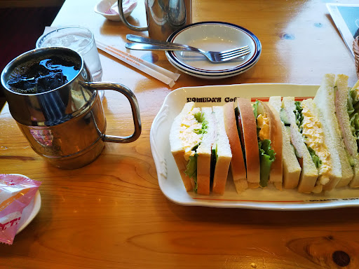 Read more小腹が空いたので久し振りに立ち寄りました。定番のミックスサンド(¥640-)とアイスコーヒーのたっぷりサイズ(¥550-)、コメチキ(¥540-)を頼みました。FCなのでどのお店に寄ってもハズレがないのは安心出来ます。味は安定のコメダです。コメダのレギュラーコーヒーは個人的には濃いと思っており、味わいはアメリカンかアイスコーヒー位が私好みなんです。専門店ではないので豆のチョイスが出来ないのは仕方ありません。私が知らないだけかも知れませんが、此処のコメダさんは各種携帯(スマホ)の充電器の無料貸出やタブレットの無料貸出迄あるんですね~。コンセント無料、フリーWi-Fiはどのお店もあるのでしょうが、少々驚きを感じたのでアップする事にしました。借りてはないですがこれは有れば便利でしょうね。まぁ、当然ですがスマホでの通話やタブレット(PC)でのweb会議は店内では御法度です。接客もとても丁寧で好感が持てます。此処は県道25号線上り側に店舗があるのですが、駐車場は他店舗と共通でとても広く、信号があるので上り線、下り線問わず安全に出入りが出来...