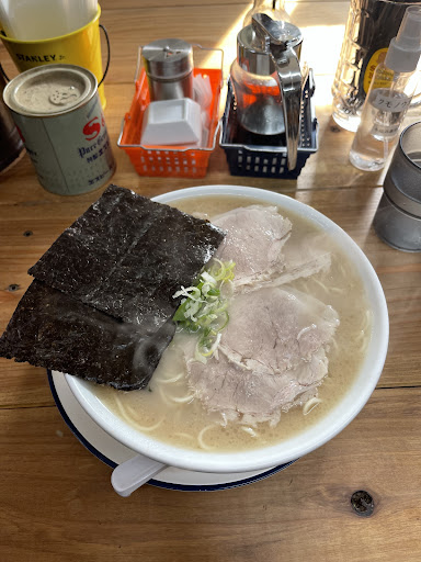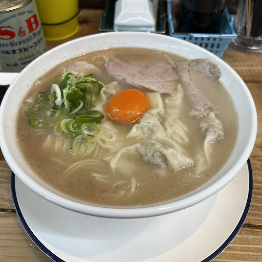Read more北九州で食べられる佐賀ラーメンのお店。 佐賀の「いちげん」で修行されたとのこと。 お店の駐車場は7~8台?周囲のコインパーキングは見つけるのが難しかったので、5分ほど待って駐車。 入口の券売機で食券を販売している。 今回はクモノウエラーメン、大盛り、ご飯の中を注文。 クモノウエラーメンには、ワンタン、海苔、生卵黄、チャーシュー、ネギがのっている。 スープは豚骨だけどあっさりしてて、飲み干せる程!優しい豚骨。麺は中太ストレートのやわ麺。普段は硬麺派だけど、佐賀ラーメンにはやっぱりやわ麺が合う。ワンタンはそもそも大好きなので、俺の中ではマスト!しっかりめの皮で中の肉も旨い。海苔はこだわりの有明海苔焼き海苔と干し海苔の2種類から選べて、焼き海苔を選択。でもオススメは干し海苔らしい。卵も味宝卵とこだわっている。チャーシューはあっさり。ネギは白ネギ? ご飯は大・中・小から選べて、価格は同じ。