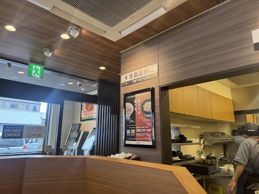 入口を 入ると・・松屋・松のや 別の 券売機。 選択・購入 すると 自動 発注。 食券 持って、席 確保・お水 セルフ。 しばらく 待つと 呼び出し、受け取り。