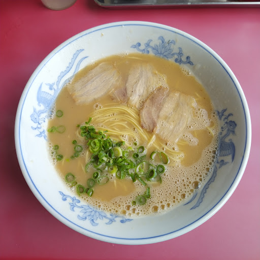 ラーメンは薄いチャーシューとネギのみのシンプルな構成。 味ですが「天下一品」のこってりラーメンに近い感じがしました。 麺の臭みは無く、個人的には「あっさり系のとんこつ」「臭みの有る(卵?を繋ぎに使っているタイプ)麺」が好きなので、少し好みと違いましたが、そんなに悪い...