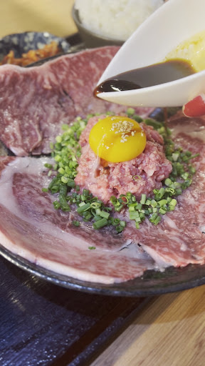 特製タレと卵黄を絡ませると更に美味しそうに‼︎ ではでは欲望のままに、ご飯に豪快に乗せて頂きます♪ 口に入れた瞬間スーッとお肉がトロけて行く感覚😍もう手が止まらない。美味しいが止まらない。笑う❤️❤️❤️ ご飯一杯あっという間に完食